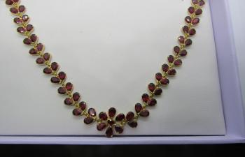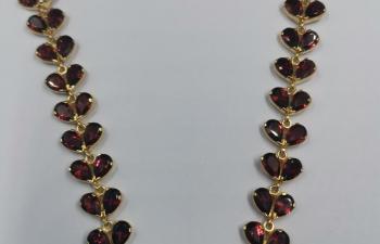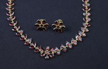 This set is perfect for any occasion, whether it's a formal event or a casual day out. It makes a great gift for loved ones or a special treat for yourself. With its timeless design and high-quality construction, the Garnet Necklace with Earrings set is sure to become a cherished piece in any jewelry collection.