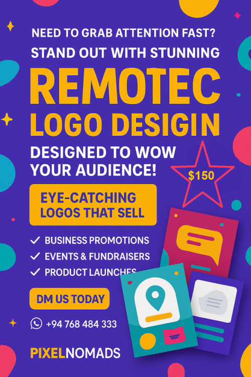 At PixelNomads, we craft unique, professional, and eye-catching logos designed to make your business stand out!